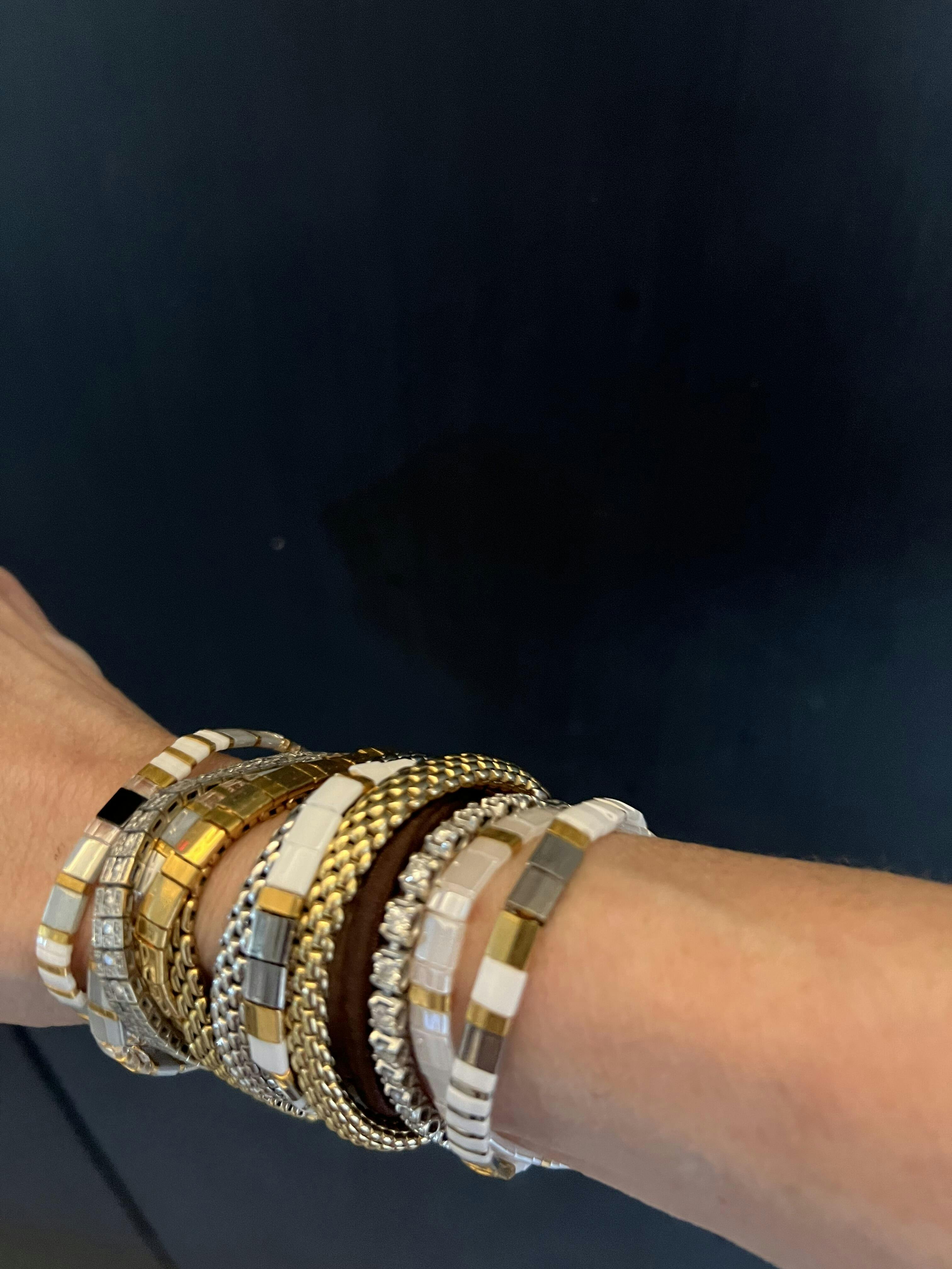 Cet ensemble contient les bracelets : 1 x Or, 1 x Cilla, 1 x Neige