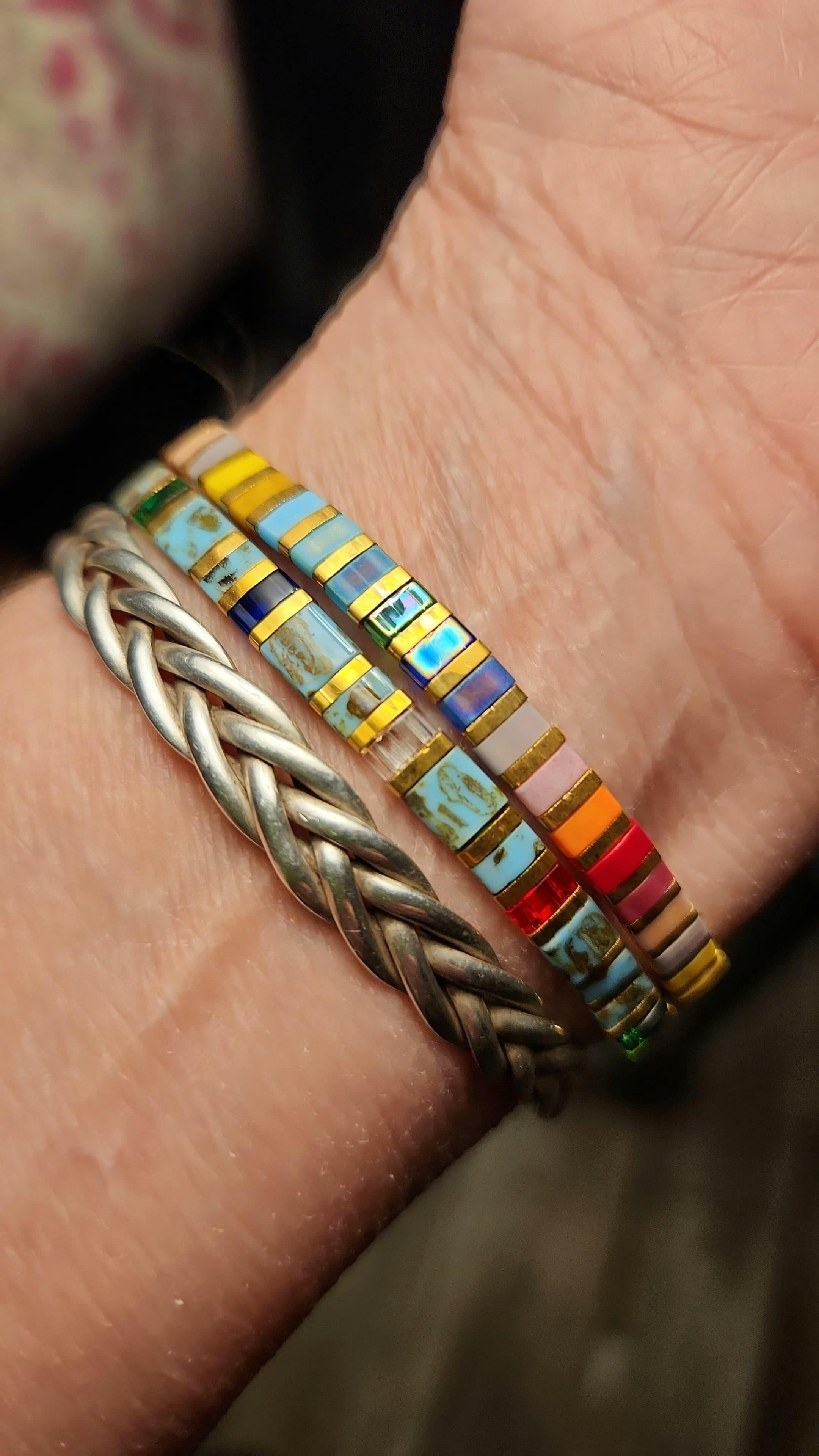 Le bracelet Liv est un modèle éclatant, façonné à la main avec des perles Miyuki du Japon, reconnues pour leur finesse et leur éclat subtil.