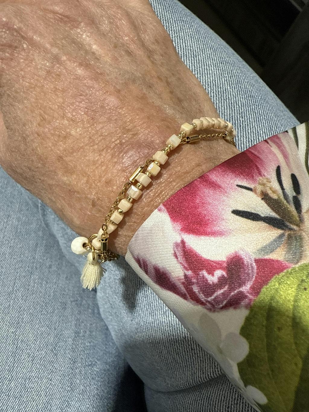 - Materialien: Perlen aus japanischem Glas, Natursteinen und vergoldetem Edelstahl
