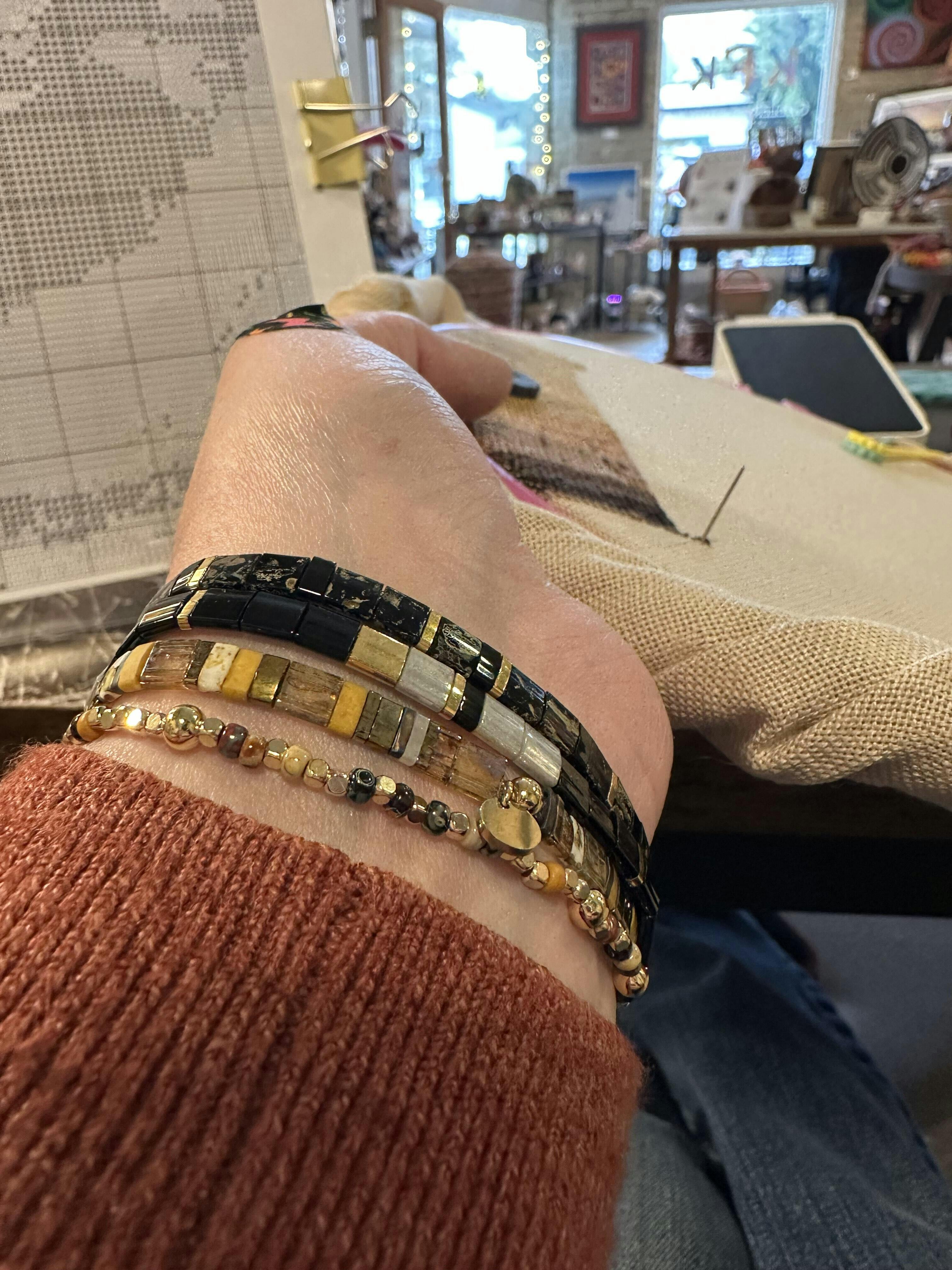 My first purchase of bracelets was a gift for a friend. The bracelets were lovely and well made and my friend is now obsessed with them. She is recommending to her place of employment (a beautiful spa) that the Koss Design jewelry be added to their inventory. I bought several other bracelets as gifts for family members my second time. The company was so helpful in correcting a mistake I had made. The jewelry is very well made, unique, and beautiful in its use of color and design. It's now my go-to gift for special people in my life. My first purchase of bracelets was a gift for a friend. The bracelets were lovely and well made and my... My first purchase of bracelets was a gift for a friend. The bracelets were lovely and well made and my friend is now obsessed with them. She is recommending to her place of employment (a beautiful spa) that the Koss Design jewelry be added to their inventory. I bought several other bracelets as gifts for family members my second time. The company was so helpful in correcting a mistake I had made. The jewelry is very well made, unique, and beautiful in its use of color and design. It's now my go-to gift for special people in my life.