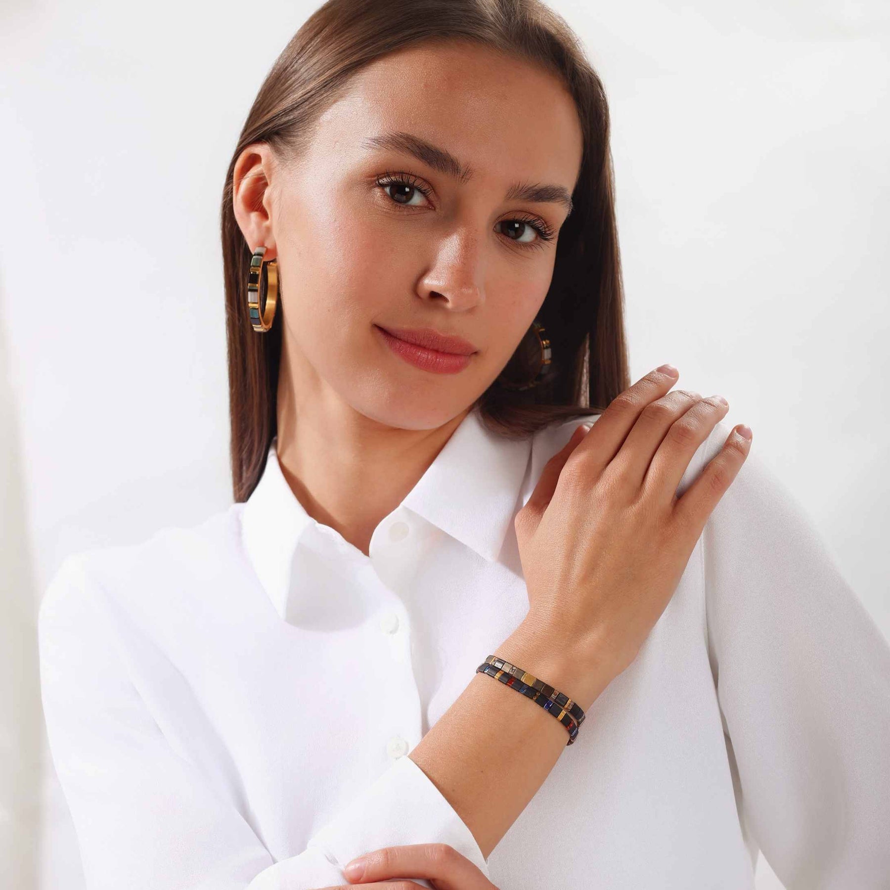Leur base dorée polie offre un cadre élégant au travail précis des perles de ces créoles circulaires raffinées.