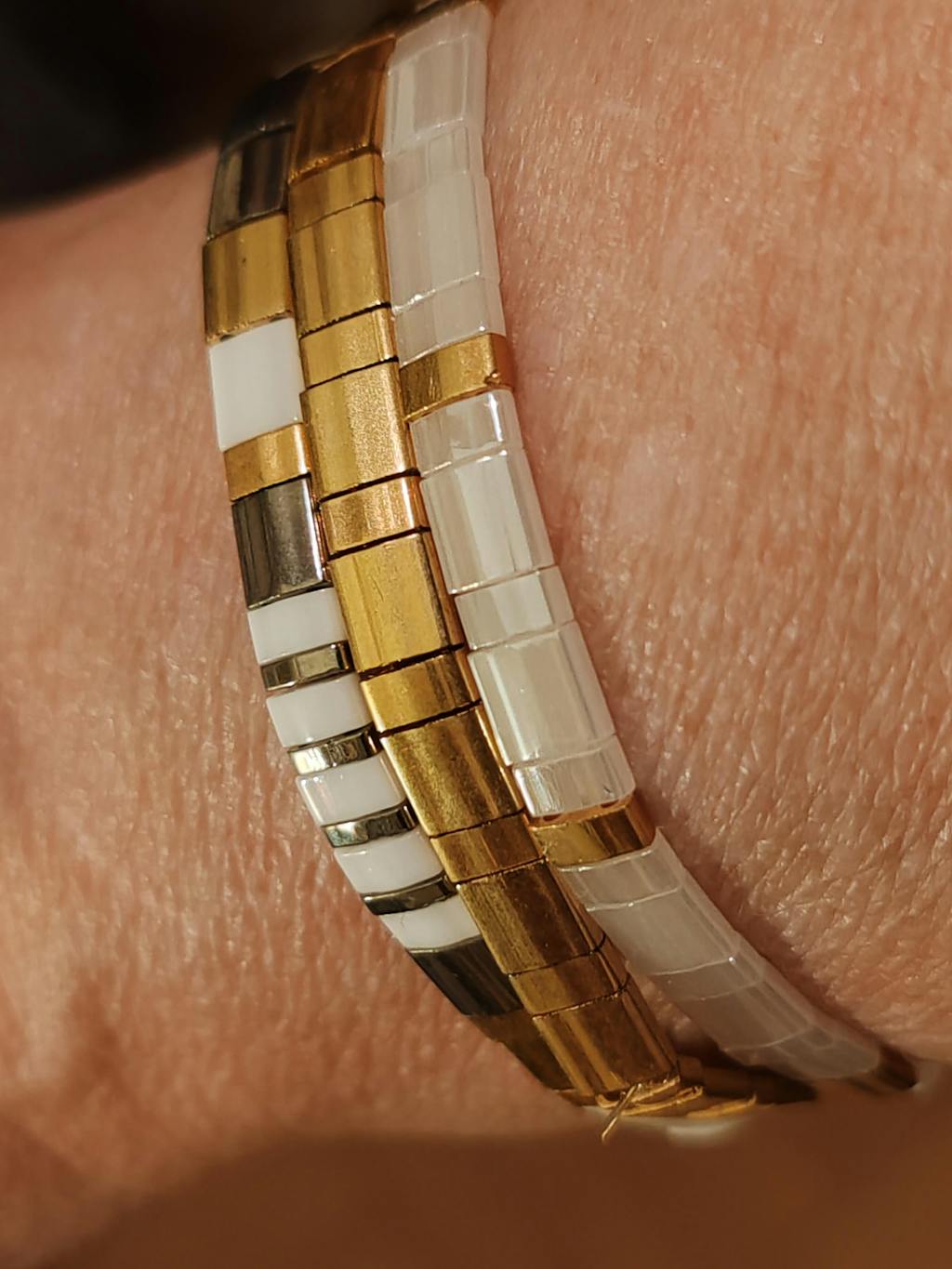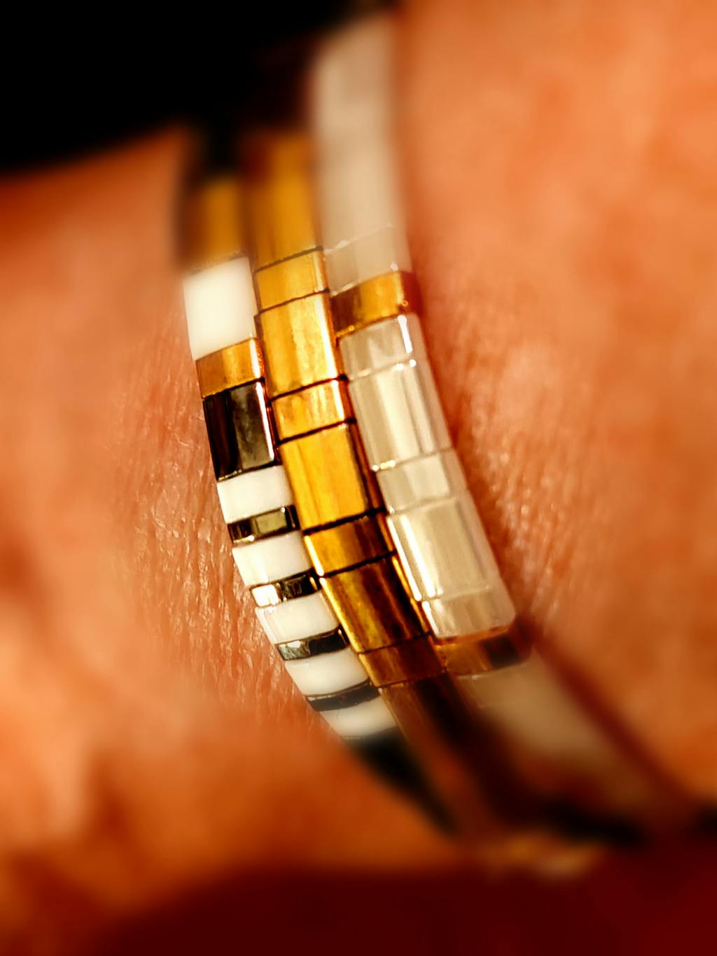 Authentic glass beads from Japan, Miyuki certified (60 per bracelet), and 24k gold plated.