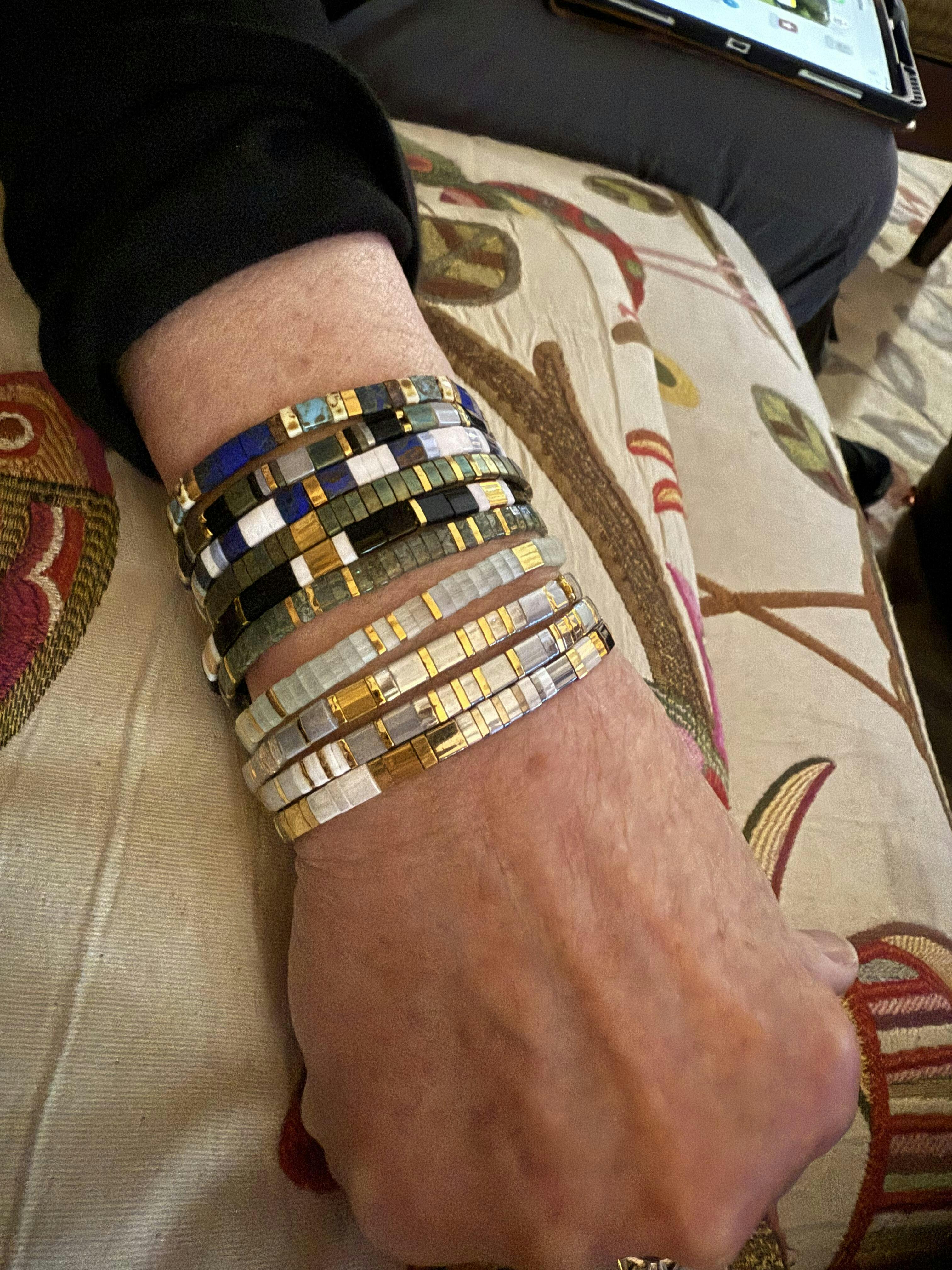 The Stars set from Køss Design features our Cilla, Ava, and Solea bracelets, handcrafted with authentic Japanese Miyuki beads and natural stones, selected for their exceptional quality and delicate shine.