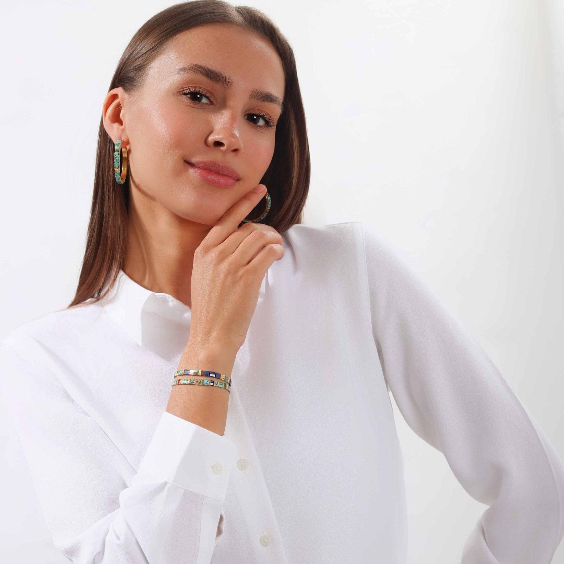 Most bohemian brands rely on circular beads and predictable designs. At Koss Design, we offer a different look: our flat, certified Miyuki beads are modern, elegant, and distinctly chic. Designed for all occasions—work, sports, or a night out—they’re lightweight, comfortable, and add a refined touch. With us, style, modernity, and functionality come together effortlessly.