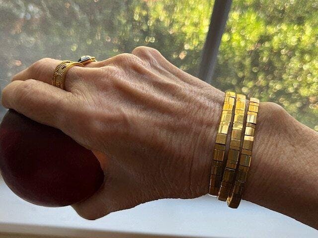 A singular gold beaded bracelet, handcrafted with authentic 24k gold-plated Miyuki beads from Japan.